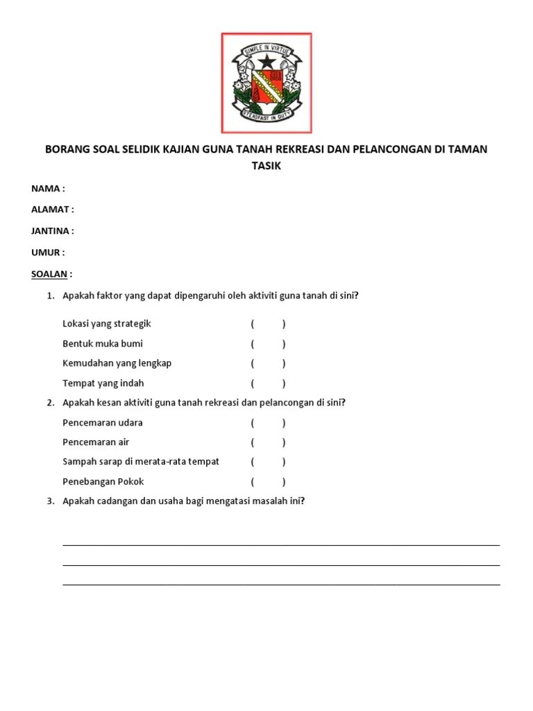 Contoh Borang Soal Selidik Tentang Pelancongan / Pdf Persepsi Pelancong Sukan Terhadap Langkawi Sebagai Destinasi Pelancongan Sukan